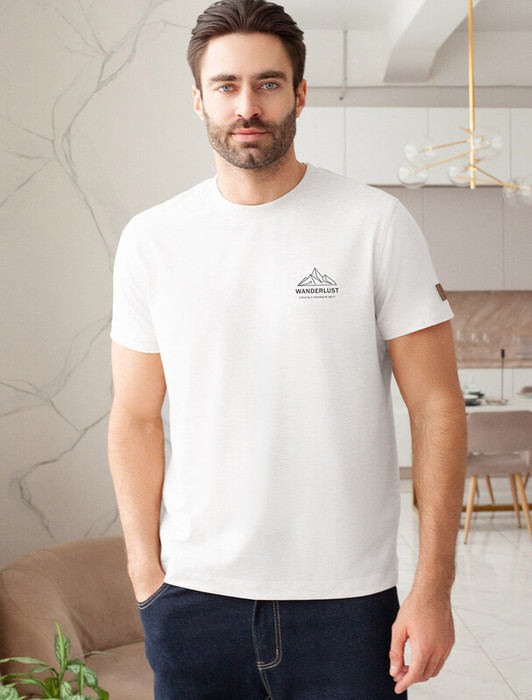 Совместные покупки Челябинск Мужская одежда Футболки — Vilatte Футболка из премиального хлопка с авторским принтом U49.045 белый_wander
