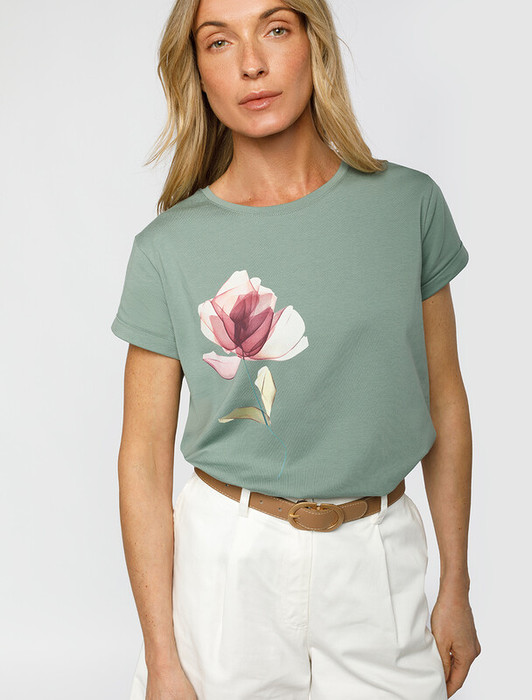 Совместные покупки Челябинск Женская одежда Футболки — Vilatte Футболка из премиального хлопка с эластаном D49.097 св.оливковый_цветок