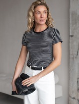 Футболка с V-образным вырезом выполнена из премиального хлопка. Добавление эластана в состав изделия способствует формоустойчивости. Самое высокое качество длинноволокнистых хлопковых волокон обеспечивает комфорт в любое время года. Изделие дополнено металлическим логотипом бренда.