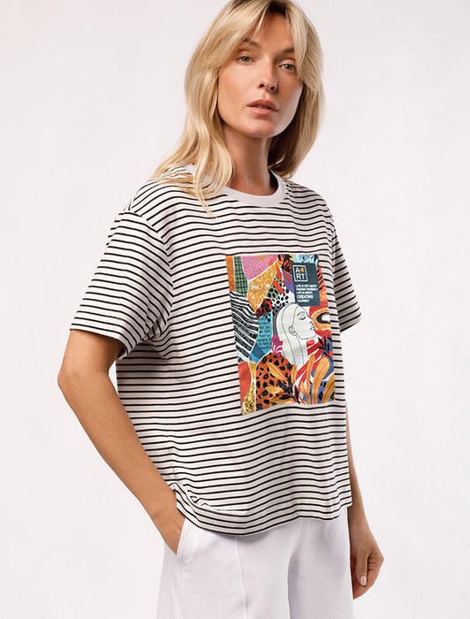 Совместные покупки Челябинск Женская одежда Футболки — Vilatte Футболка из премиального хлопка с эластаном D49.989 белый-черный_art pos