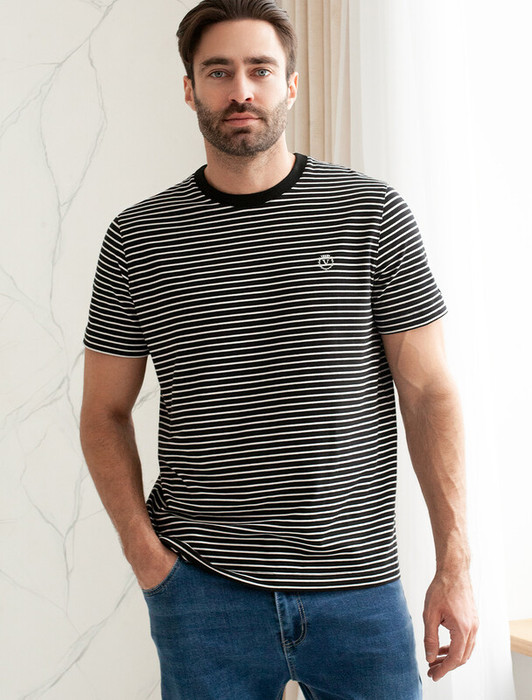 Vilatte Футболка из премиального хлопка с эластаном U49.041 черный-белый