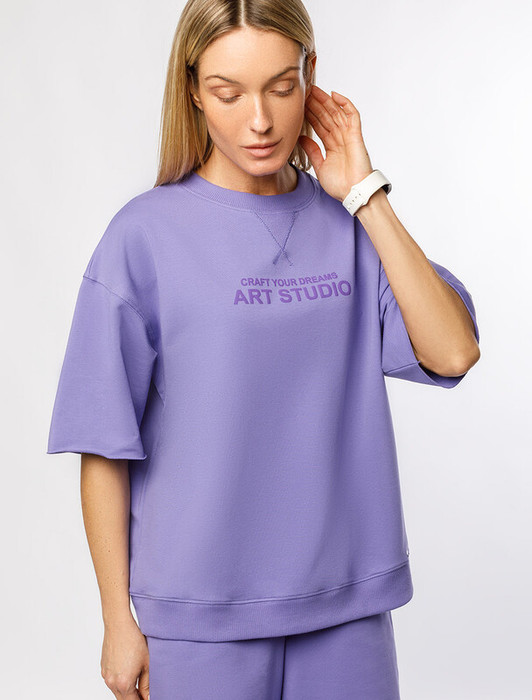 Совместные покупки Челябинск Женская одежда Футболки — Vilatte Футболка из тонкого премиального футера с эластаном D49.081 лавандовый_a