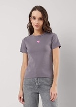 Футболка выполнена из трикотажа в широкий рубчик. Базовая модель с круглым вырезом и рукавом до локтя. Эластичный хлопковый трикотаж сидит по фигуре, не сковывает движений и очень комфортный в носке. Фактура вертикальных полос визуально стройнит и вытягивает силуэт. Базовое изделие хорошо впишется в любой гардероб. Идеально подходит для многослойных образов в базовый гардероб.