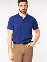Vilatte Поло тонкой вязки из хлопка с эффектом меланж U39.016 синий