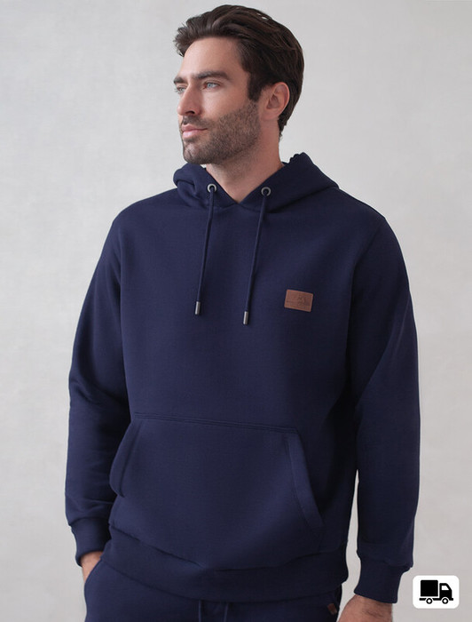 Худи выполнено из премиального эластичного футера трехнитки с теплым начесом. Уютная и классическая модель с капюшоном и карманом-кенгуру дополнена нашивкой с логотипом бренда из эко-кожи. Свободный крой не сковывает движений. Высококачественная фурнитура цвета темное серебро. Изделие сочетается в костюме с брюками U44.006