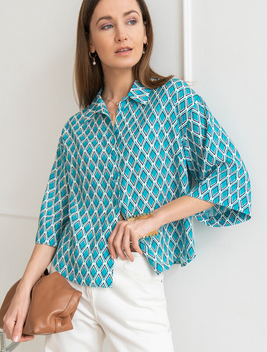 Свободная блузка выполнена из премиальной вискозы и лиоцелла. Приятная на ощупь ткань охлаждает кожу в жаркую погоду, а крой не ограничивает свободу движений. Свободный силуэт и герметичный принт подходит всем для любой фигуры. На спинке фирменный логотип бренда.