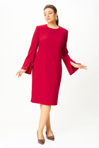 Платье из плотного струящегося крепа прямого кроя с «парящими» рукавами. Фасон платья сбалансирует любой тип фигуры: прямой свободный крой, универсальная длина подола – чуть ниже колена, широкая пройма и акцентные рукава. Классический О-образный вырез фиксируется сзади изящной золотой пуговицей. Материал почти не мнется и комфортен в носке.