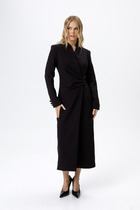 Элегантное платье прямого кроя черного цвета выполнено из воздушной сетчатой ткани с прозрачными рукавами, придающими образу лёгкую игривость. Мягкая вискозная подкладка обеспечивает комфорт, сохраняя при этом эффект полупрозрачности. Универсальный черный цвет делает платье идеальным для базового гардероба.