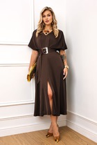Совместные покупки Челябинск Женская одежда Платья — Vilatte Платье из сетки с подкладкой D22.238 коричневый-бежевый змея