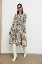 Vilatte Платье на запАх из вискозы с принтом D22.258 черный-бежевый