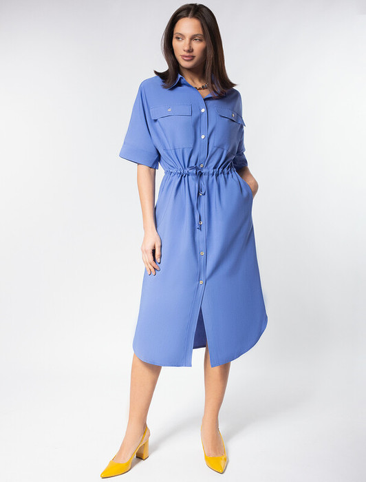 Совместные покупки Челябинск Женская одежда Платья — 27.03 Vilatte Платье-рубашка из плотного лиоцелла D22.209 васильковый