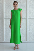 Платье тонкой вязки выполнено из хлопка. Лаконичная модель с высоким воротом дополнена манжетами и разрезами по бокам. Изделие свободно сидит по фигуре и не сковывает движений. Мягкая пряжа очень приятная к телу не колется и сохраняет тепло при этом не перегревая. Изделие дополнено металлическим логотипом бренда.