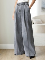 Vilatte Широкие джинсы с защипами из эластичного денима D54.307 серый