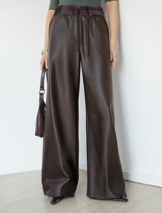 Совместные покупки Челябинск Женская одежда Брюки — Vilatte Широкие кожаные брюки-трубы с поясом D24.272 коричневый