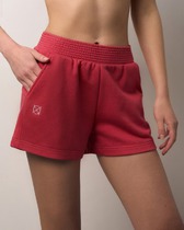 Шорты выполнены из футера двухнитки с эластаном. Модель прямого кроя дополнена боковыми карманами и одним задним карманом.  Пояс выполнен из эластичного трикотажа в рубчик. В пояс вставлен плоский хлопковый шнур в тон изделия с серебристыми наконечниками. Изделие дополнено металлическим логотипом бренда. Сочетается в костюме с жакетом D49.078, джемпером D49.079, D49.080 и футболкой D49.081