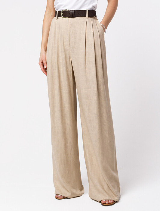 Брюки-палаццо выполнены изо льна с вискозой. Свободная модель с посадкой на талии визуально вытягивает силуэт и создает роскошный образ. Ткань изящно драпируется, струится по ногам, почти не мнется и сохраняет форму в течении долгого времени. Резинка на поясе. Подходит для любой фигуры и скрывает недостатки. Сочетается в костюме с топом D23.060 и блузками D29.237, D29.244