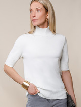 Vilatte Джемпер тонкой вязки из хлопка с нейлоном D34.201 натуральный белый