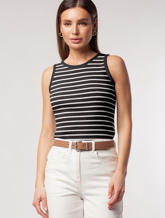 22.03 Vilatte Топ из трикотажа в широкий рубчик D43.223 черный с белым