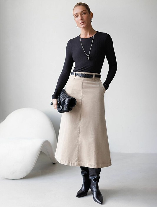 — Vilatte Юбка из эластичного микро-вельвета D26.200 светло-бежевый