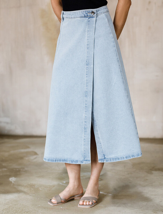 — 22.03 Vilatte Юбка на запАх из эластичного денима D56.112 светло-голубой