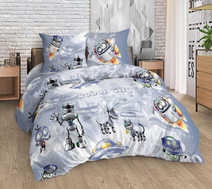 Совместные покупки Челябинск Товары для дома и дачи Постельное белье — ВЛАДЛЕН Детское постельное белье из бязи 1,5сп с 1 наволочкой Город роботов
