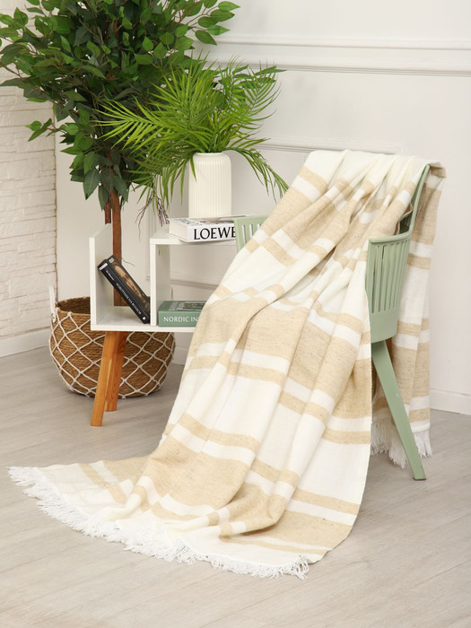 ВЛАДЛЕН Плед полушерстяной (50% шерсть) - Полоса бежевая