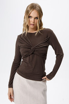 Vilatte Джемпер фактурной вязки из хлопка с кашемиром D39.349 коричневый