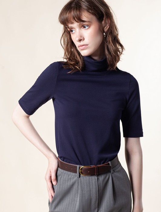 Состав: 92%Хлопок 8%ПУ Параметры модели на первом фото: Рост 177, бюст 78, талия 59, бедра 90Базовая синяя водолазка с коротким рукавом выполнена из премиального хлопка с добавлением эластичных волокон. Гладкий трикотаж обеспечит гарантированный комфорт и удобство в использовании. На рукаве изделия металлическая нашивка с логотипом бренда. Совет стилиста: водолазку с коротким удобно сочетать с жакетом или блузкой. Также как самостоятельный верх к широким брюкам.