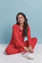 womensecret Roter weicher Ripp-Langpyjama Rot