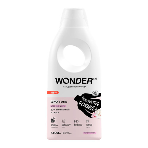 Средства для стирки WONDER LAB сохраняют свою эффективность при температуре от 20 до 90 градусов. Подходит для ручной и машинной стирки. Гель для стирки не требует использования кондиционеров, сохраняя мягкость белья надолго. Легкий аромат практически не остается на одежде, благодаря чему средство для стирки отлично подойдет аллергикам и чувствительным к лишним запахам людям. экосредства не вредят водоёмам. Гель для стирки не содержит фосфаты и фосфонаты.