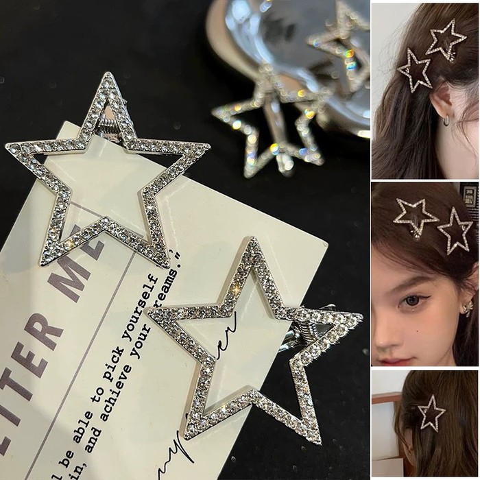 Красивые заколки-зажимы украшены сверкающими стразами, которые переливаются при каждом движении. Заколки со стразами хорошо держат пряди и добавят особого шарма и стиля вашей прическе. Красивые заколки звездочки со стразами придадут нарядный праздничный вид, прекрасно подойдут для вечеринки или новогоднего праздника.Материал: Металл, стразы.Размер: 5 см.