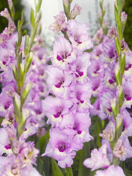 нежнейший сиреневый с жёлтым посередине и винным пятном в центре цветка , h-130-150см