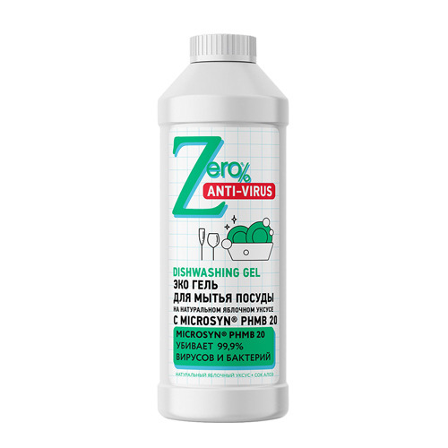 Эко гель для мытья посуды на натуральном яблочном уксусе с MICROSYN® PHMB 20 тщательно очищает и обеззараживает, не сушит кожу.