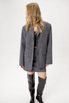 Джемпер свободного прямого кроя, выполнен из мягкой пушистой ткани серого цвета с пайетками. Характеристики: прямой крой, горловина овальная, рукав спущен, брендированная подкладка. Длина по спинке 51см, длина рукава от края горловины 71см.