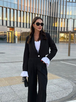 Нежный утонченный жакет выполнен из плотной костюмной ткани, обработан подкладкой. Приталенный крой мягко облегает фигуру, а изящные подплечники добавляют образу уверенности и грации, напоминая о классических образах французского кинематографа. Складки, создающие рельеф баски, мягко ложатся на бедра за счет своей геометрии. Рукава прямые втачные, одношовные.