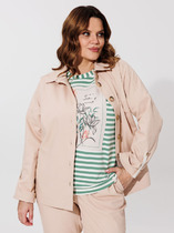 Куртка-жакет прямого силуэта  БЕЗ ПОДКЛАДКИ подходит для девушек и женщин любого возраста. Застежка - на кнопки. Воротник рубашечного типа на стойке. Удобно расположенные в рельефных швах карманы подходят для хранения мелочей. Рукава рубашечного кроя с удлиненной застежкой на кнопках гармонично дополняют стиль куртки.  Женский пиджак на весну, лето и осень выполнен из плотного хлопка.  Ткань хорошо "дышит". Такой летний жакет-рубашку с регулировкой ширины по низу, можно удачно сочетать с модными широкими брюками (арт. 25242), выполненными из такого же хлопка.  В весенний, летний и осенний сезон этот жакет можно носить в офис, на прогулку, на вечерние встречи с друзьями. Фантазируйте с яркими акцентами в виде аксессуаров,  и Ваше лето будет стильным и комфортным!