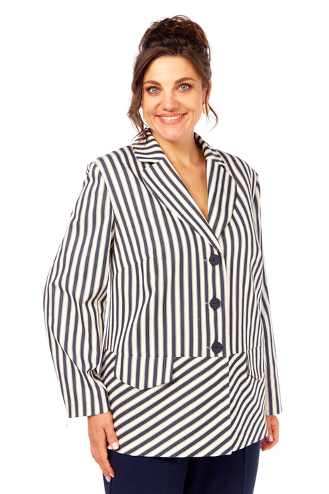 Стильный классический жакет, прекрасный вариант на каждый день. Модель прямого силуэта с центральной бортовой застежкой на петли-пуговицы и с фигурным клапаном. Низ изделия обработан отрезной деталью, где полоска оформлена по диагонали. Спинка со средним швом. Рукав втачной, полной длины. Жакет частично на подкладке (полочки и спинка)