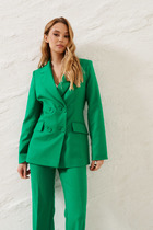Жакет выполнен из костюмной ткани. Жакет прямого силуэта, длиной ниже линии бедер, покроя "oversize". Спереди под лацканами прорезные карманы с клапанами. Центральная бортовая застежка на пуговицы. На спинке средний шов и шлица. Воротник пиджачного типа. Плечевой шов удлинен. Рукав втачной, двухшовный, со шлицей по низу, застегивающейся на пуговицы. Жакет на притачной по низу подкладке. Ремень в комплект НЕ ВХОДИТ.