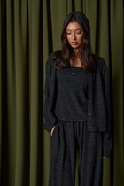 Джемпер выполнен из трикотажного полотна с блеском. Джемпер полуприлегающего силуэта, длиной выше линии бедер. Воротник стояче-отложной. Плечевой шов удлинен. Рукав втачного покроя, одношовный. Застежка по планке на петли и декоративные пуговицы.