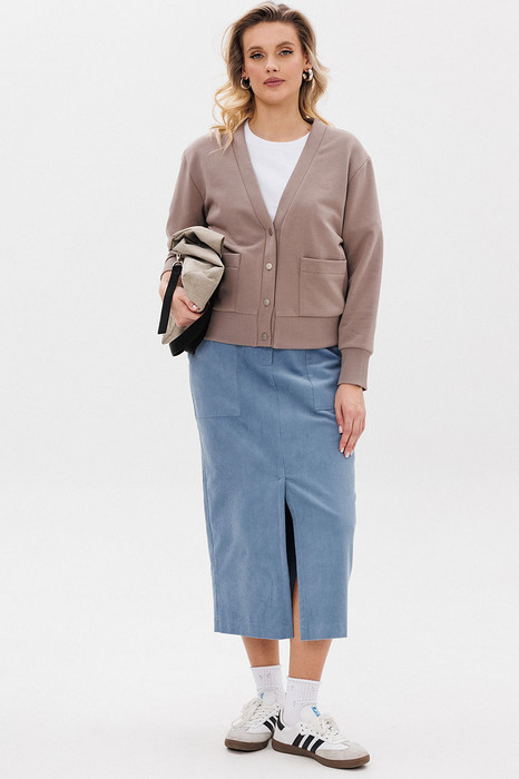 Длина кардигана по среднему шву спинки: 55-59 см.
