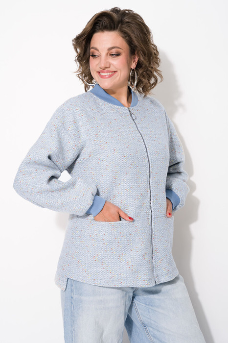 Женский твидовый жакет, по типу бомбера – стильная женская одежда на каждый день, которая станет отличным дополнением повседневного гардероба. Модель свободного силуэта, со спущенной линией плеча. Рукав длинный, с притачными манжетами по низу.   Застежка центральная, на металлическую тесьму-молнию.  Горловина обработана трикотажной планкой по типу – бомбера. Низ по полочке фигурный, по спинке удлинен. По полочке расположены рабочие карманы в шве! Свободная оверсайз модель подходит практически под любую фигуру. Модель на шёлковой подкладке!