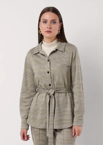 Модель силуэта оверсайз, с длинным свободным рукавом покроя реглан. Воротник отложной. Застежка центральная на молнию с дополнительной планкой. По полочке расположены прорезные карманы с клапаном. Рукав длинный, на притачной манжете с застежкой на пуговицу. Спинка с центральным швом, по низу заложены складки. По низу изделия, спереди расположен декоративный пояс с пряжкой для более комфортного прилегания. Модель на шелковой подкладке.
