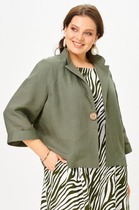 Детали: прямой силуэт, удлинённая линия плеча, втачной одношовный рукав с ассиметричными складками, функциональные карманы, центральная застёжка на 1 пуговицу, жакет на подкладке.