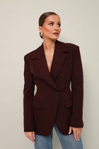 Стильный жакет полуприлегающего силуэта, выполнен из костюмной ткани. Смещенная застежка на петлю и пуговицу. Воротник пиджачного типа с отложными лацканами, край борта скругленный по низу жакета. Спереди обработаны прорезные карманы в рамку с клапанами. Рукава втачные, двухшовные со шлицами с застежкой на петли и пуговицы. Спинка с рельефами и средним швом. Жакет на подкладке.