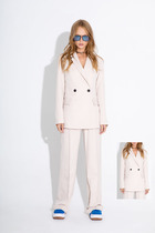 Жакет прямой. Застежка на петли и пуговицы. Воротник пиджачный. На переде накладные карманы. На верхнем кармане выполнена вышивка. По спинке шлица. Рукав прямой со шлицей понизу. Жакет на хлопковой подкладке.