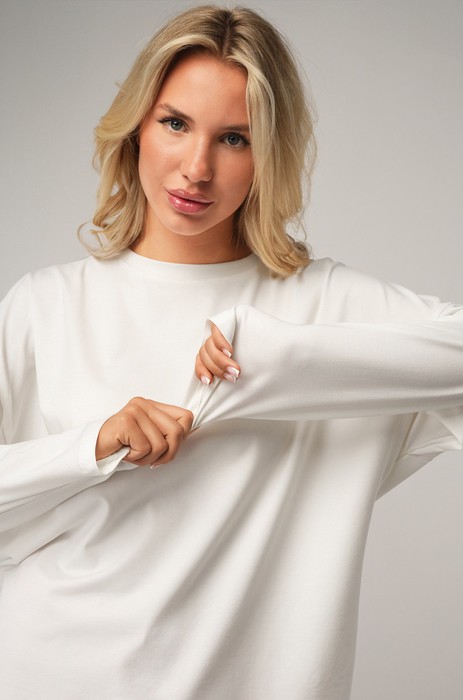 Женский лонгслив оверсайз создан, чтобы дарить свободу и комфорт в любую погоду. Однотонный молочный лонг смотрится стильно и сдержанно, а хлопковый трикотаж делает его невероятно приятным к телу.