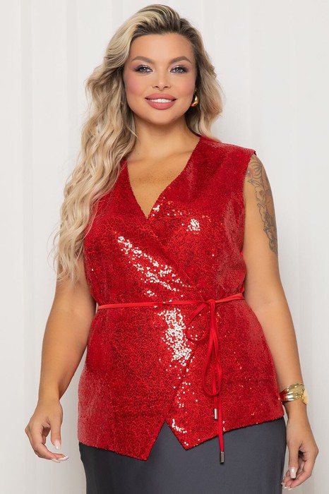 Жилет “на запах“ из ткани с пайетками и плотного шелка.