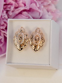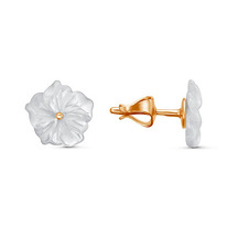 Серьги гвоздики Цветы из золоченого серебра с перламутром