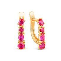 Серьги из золочёного серебра с нат. рубинами, синт. рубинами и фианитами