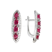 Серьги из серебра с нат. рубинами и фианитами родированные